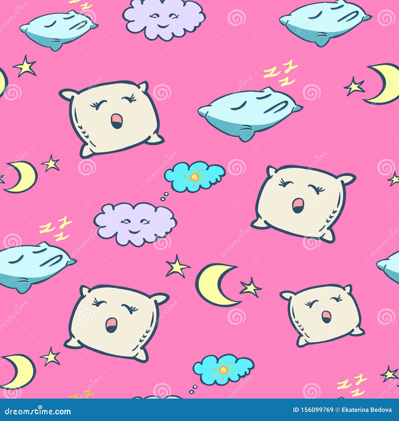 Seamless Pattern With Pillows And Moon Bed Time Background