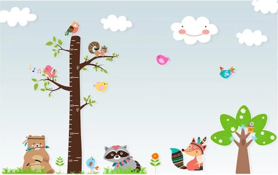 3d Wallpaper Custom Photo Mural Cartoon Big Tree Measuring Height Sticker Children Room Wallpaper Background Home Decor Wall Art Pictures Hd